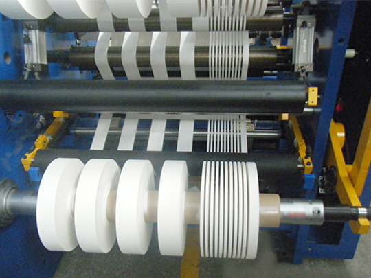 分切機是一種將寬幅紙張、云母帶或薄膜分切成多條窄幅材料的機械設(shè)備,常用于造紙機械、電線電纜云母帶及印刷包裝機械。分切機主要的運用于:云母帶、